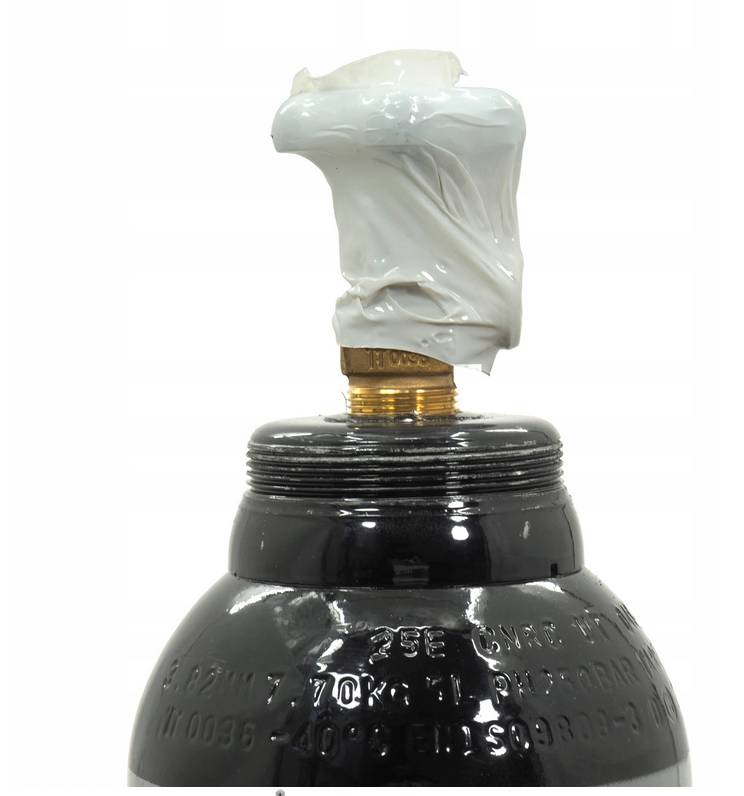 Kołpak ochronny zabezpiecza zawór przed uszkodzeniem w transporcie lub podczas magazynowania. Butla jest fabrycznie nowa i posiada ciśnienie robocze 150 bar.
