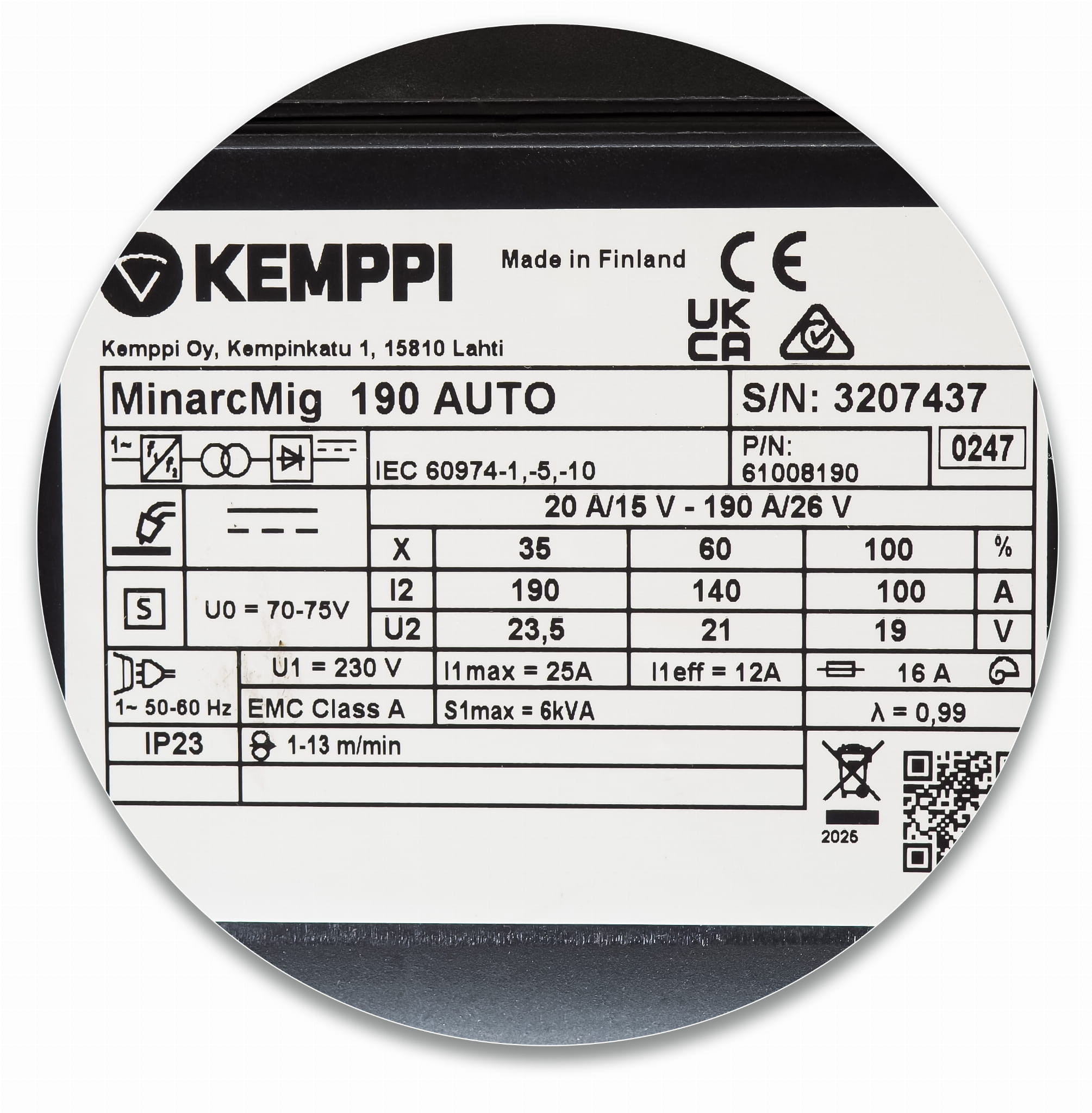 | Spełniane normy: | IEC 60974-1, -5, -10, IEC 61000-3-12 |
